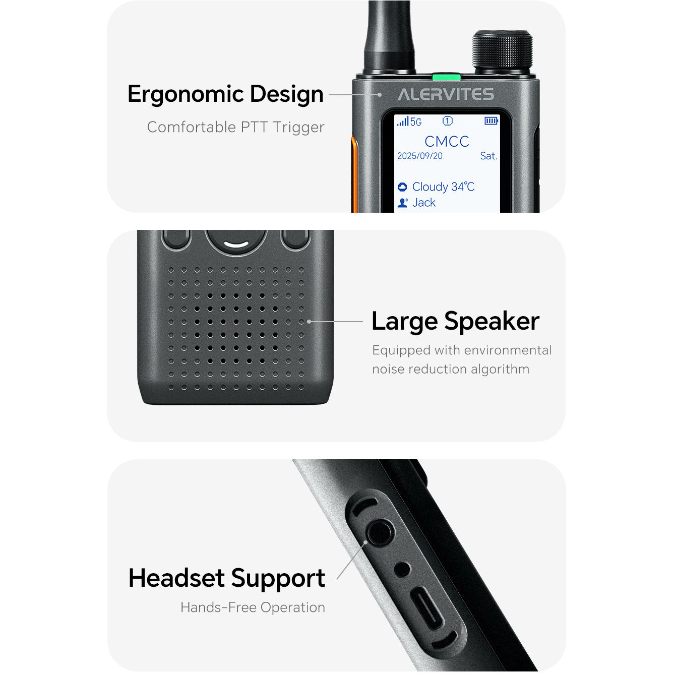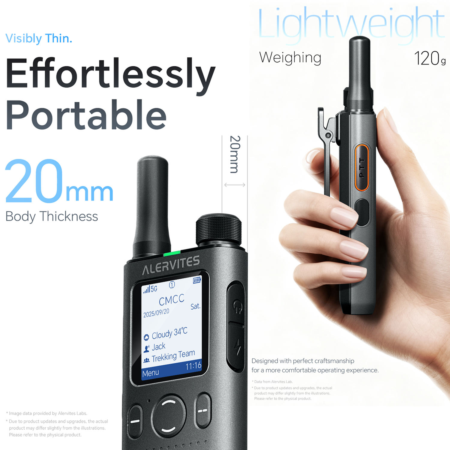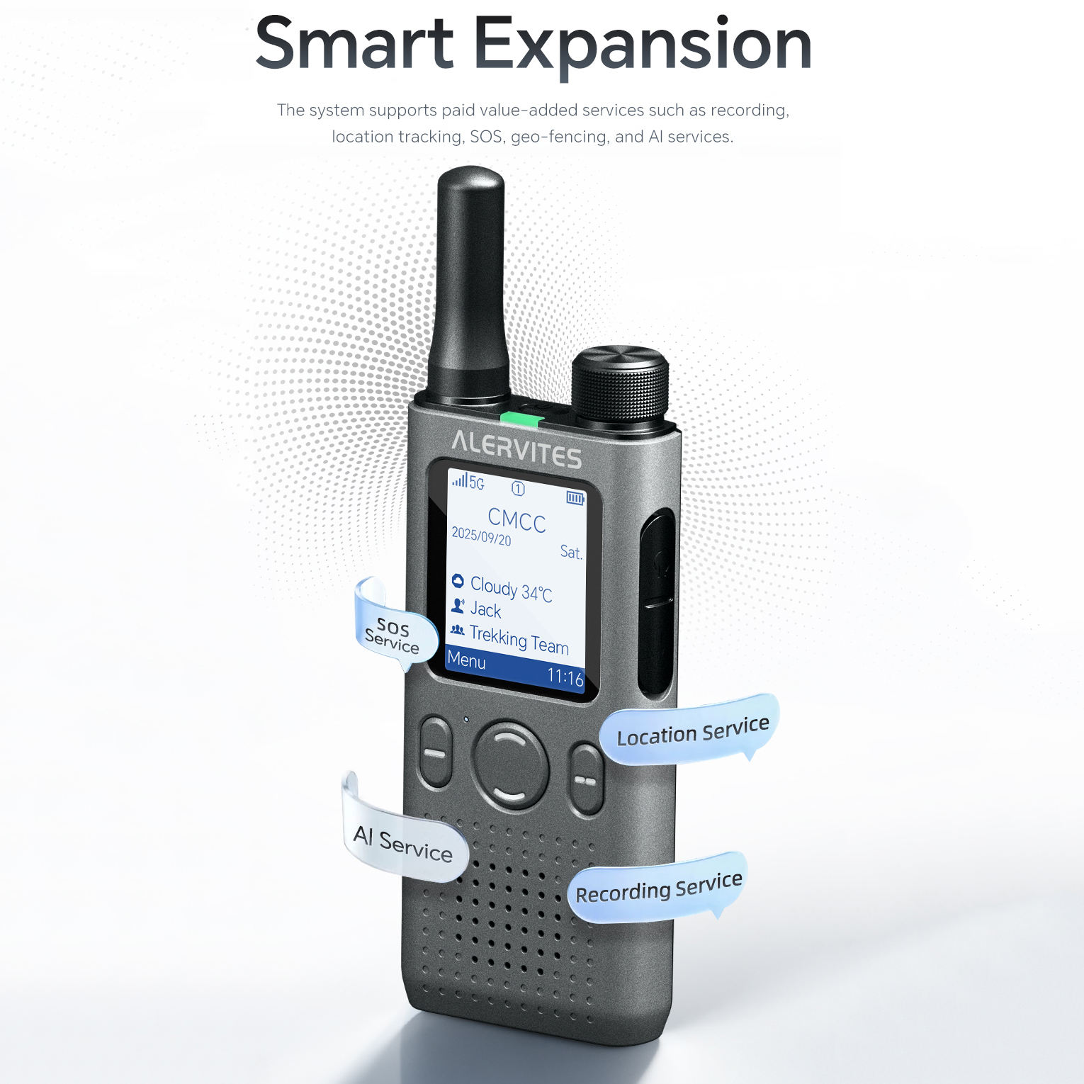 The Alervites AT-1 is a high-performance handheld 4G POC walkie talkie, featuring LTE network connectivity and global communication capability. With its compact design, long battery life and reliable performance, it is suitable for various scenarios such as enterprise management, outdoor operations, and team coordination, providing efficient and stable instant communication.
