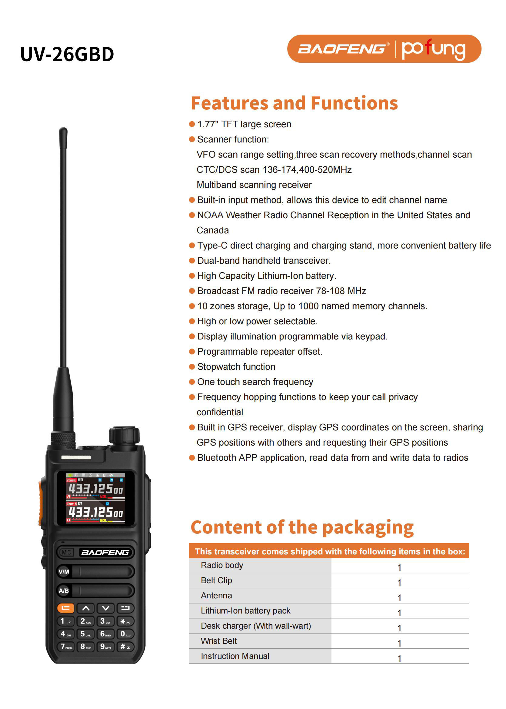 Scanning Function: Auto-scanning function to quickly search for available channels, improving communication efficiency and convenience.
