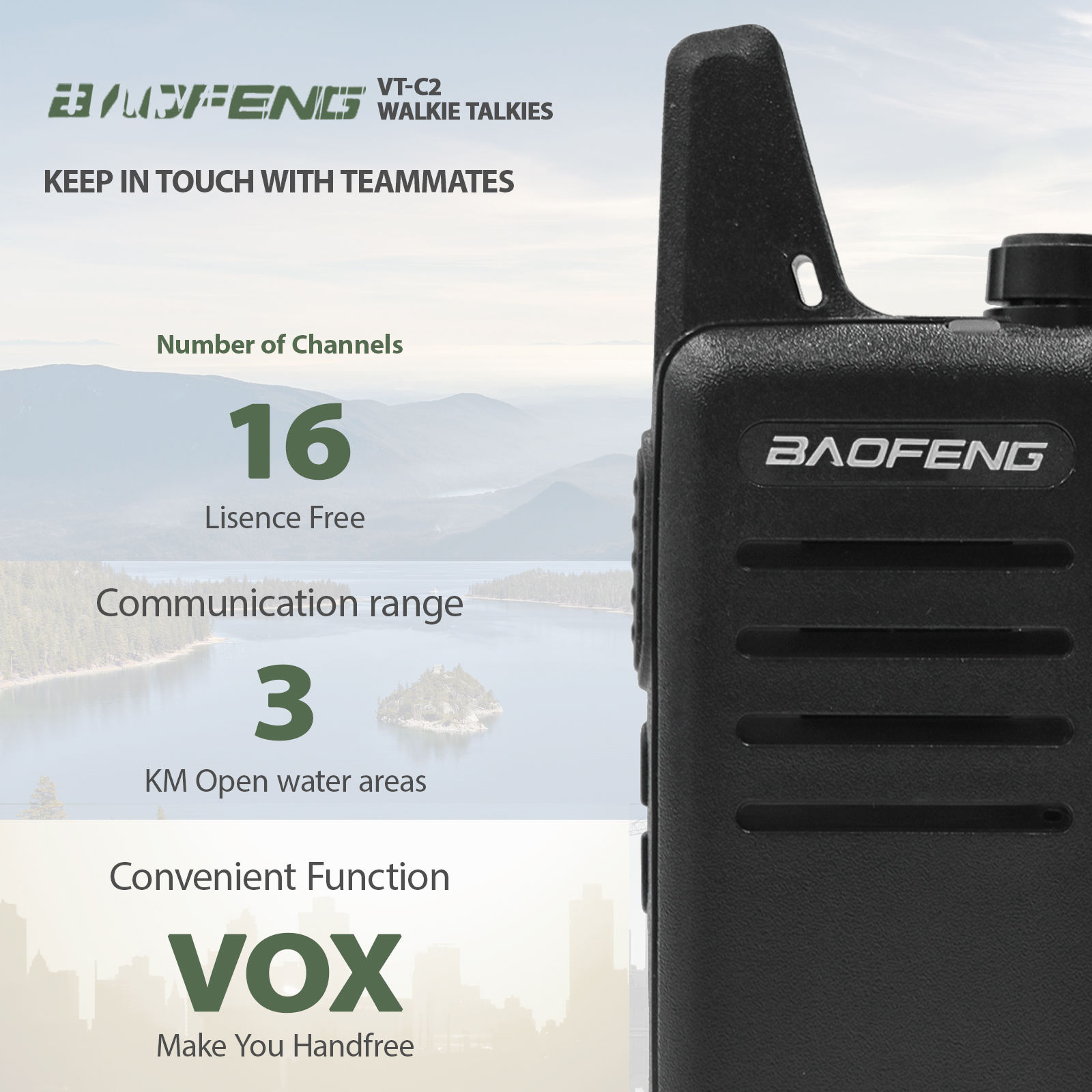 With its mini and portable design, rich practical functions and stable technical performance, the Baofeng VT-C2 Walkie Talkie is an ideal choice for outdoor adventures, daily communication, and work coordination. It perfectly balances portability and functionality, bringing convenient and reliable communication experience to users.